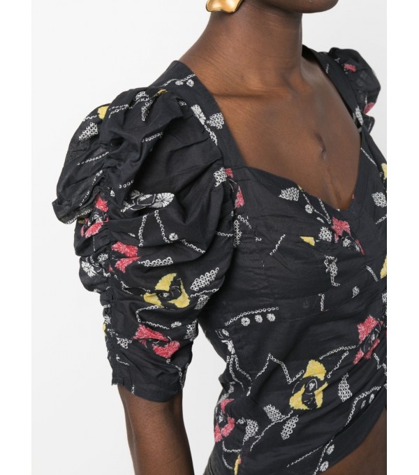 Black cotton crop top with print